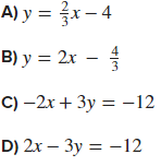 Write an equation in slope-intercept form that passes through the points (0, 2) and (2 ,-4).