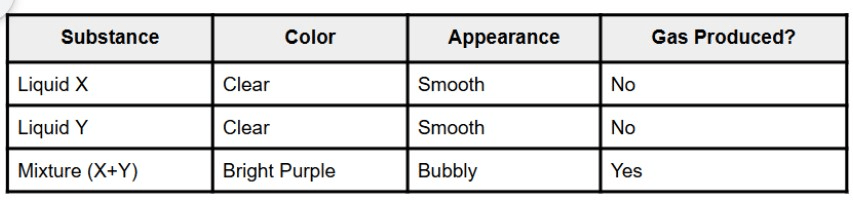 Two clear liquids, Liquid X and Liquid Y, were mixed together. (Shown in the photo) Based on this information, which sentence is true?