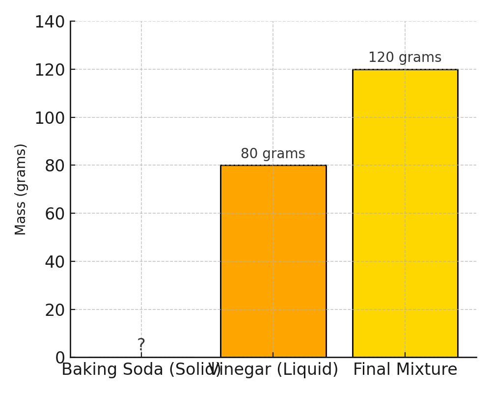 A student mixed baking soda and vinegar in a closed container. The student forgot to record the mass of the baking soda. Based on the graph, what was the mass of the baking soda?