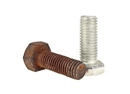 A metal nail is left outside. Over time, a reddish-brown coating forms on its surface.