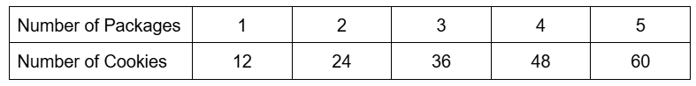 Ms. H wants to buy cookies for her classes. If each package has 12 cookies, create a table to show how many packages she needs for up to 60 students.