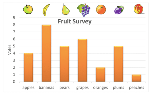 Look at the bar graph below.  How many children voted for bananas or apples?