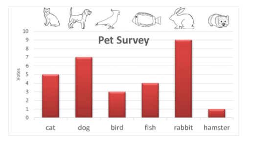 Look at the bar graph below.  How many more votes did the rabbit get than the fish?