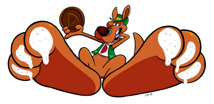This kangaroo is the mascot of a line of cookies dipped in frosting, that was discontinued from Canada as of 2018. What is this snack?