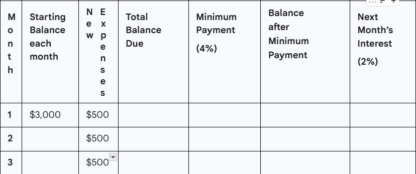 How much would be owed after 3 months of paying off your credit card bill in full?