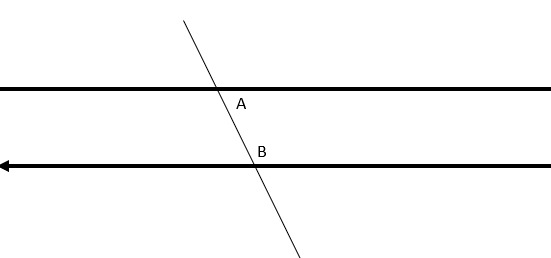 Two parallel lines are cut by a transversal, as drawn below. If the measure of angle A is 50◦, what is the measure of angle B?