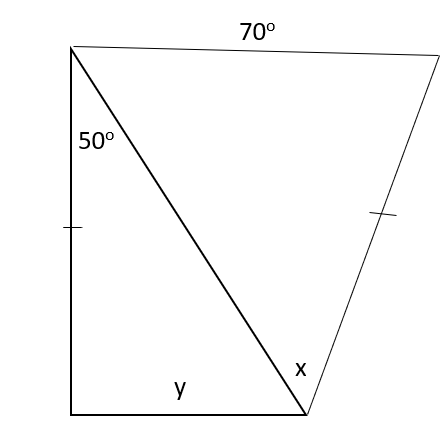 In the figure on the whiteboard, if a = 50 and b = 70, what is d?