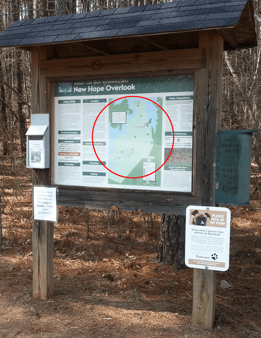 Studying this (circled in red) on a trailhead information board will help you avoid sensitive areas.