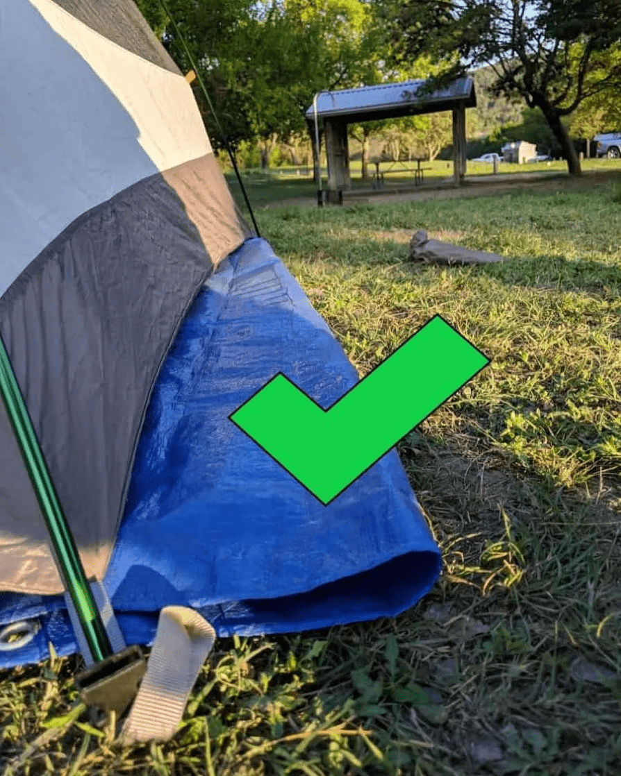 This barrier is placed under a tent to reduce inside moisture and prevent abrasions to the tent floor.