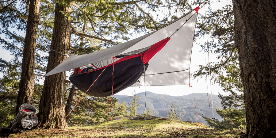 A type of camping, pictured below. Distinct from tent camping, car camping and shelter camping.