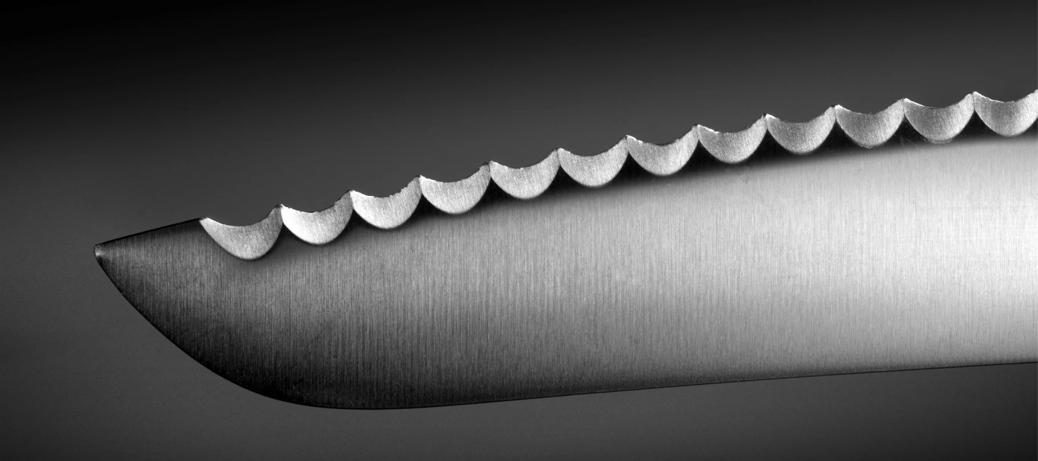 This type of cutting edge with many teeth is useful for cutting through tough, fibrous materials.