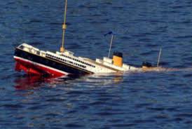 To fall to the bottom of water. OR a place to wash things.