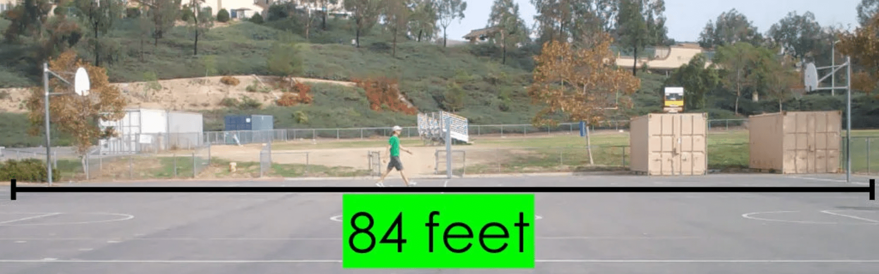 How long will it take to walk across the entire basketball court? (Estimate to the nearest second)