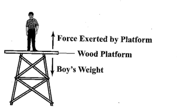 THE DIAGRAM BELOW SHOES THE FORCES ACTING ON A BOY STANDING ON A PLATFORM.