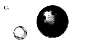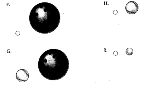A PING PONG BALL, A TENNIS BALL, A BASEBALL, AND A BOWLING BALL ARE ARRANGED IN DIFFERENT PAIRS, AS SHOWN BELOW.  THE DISTANCE BETWEEN THE BALLS IN EACH PAIR IS 15 CENTIMETERS. BETWEEN WHICH PAIR OF BALLS WILL THE GRAVITATIONAL FORCE BE THE GREATEST?