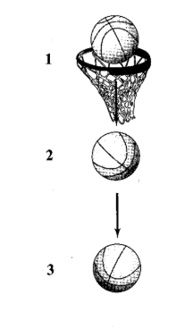 THE PICTURE BELOW SHOWS A BASKETBALL FALLING THROUGH A HOOP.
