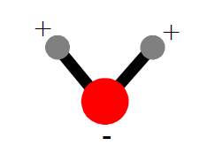 Draw a picture of a water molecule. Label the positive ends and the negative ends of the molecule.