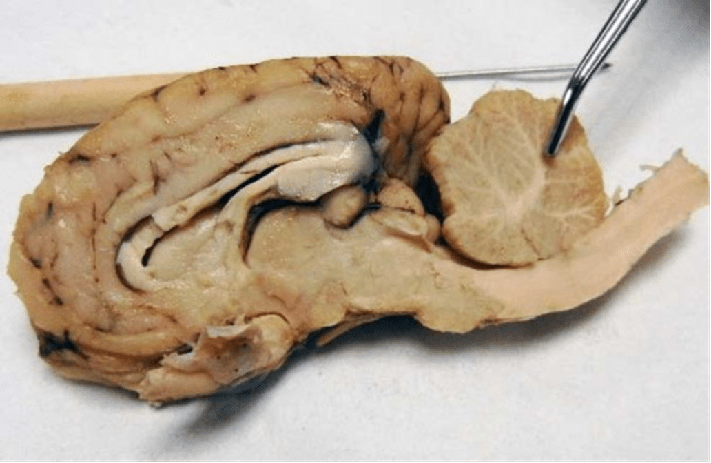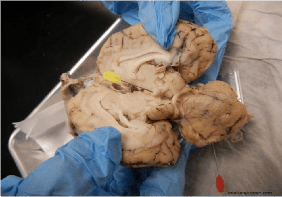 2) Corpus callosum; connects gray matter of two cerebral hemispheres and allows for communication between both sides of the brain as well as integrated function