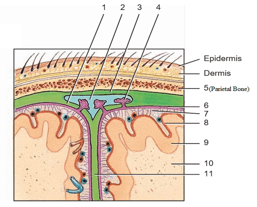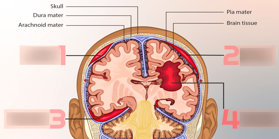 2) Subdural Hematoma - a collection of blood under the dura mater
