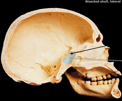 The sphenoid bone is responsible for holding a “master gland” of the body, producing many hormones. What is this gland, and what part of the sphenoid bone is it located?