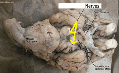 What Cranial Nerve is being pointed to by the yellow arrows, and what number is this cranial nerve?