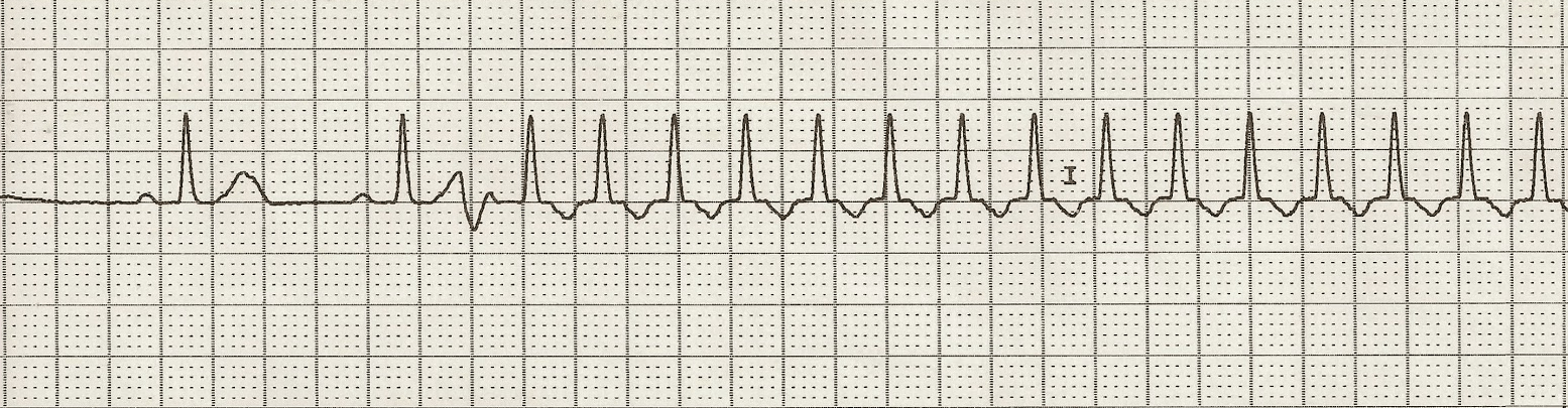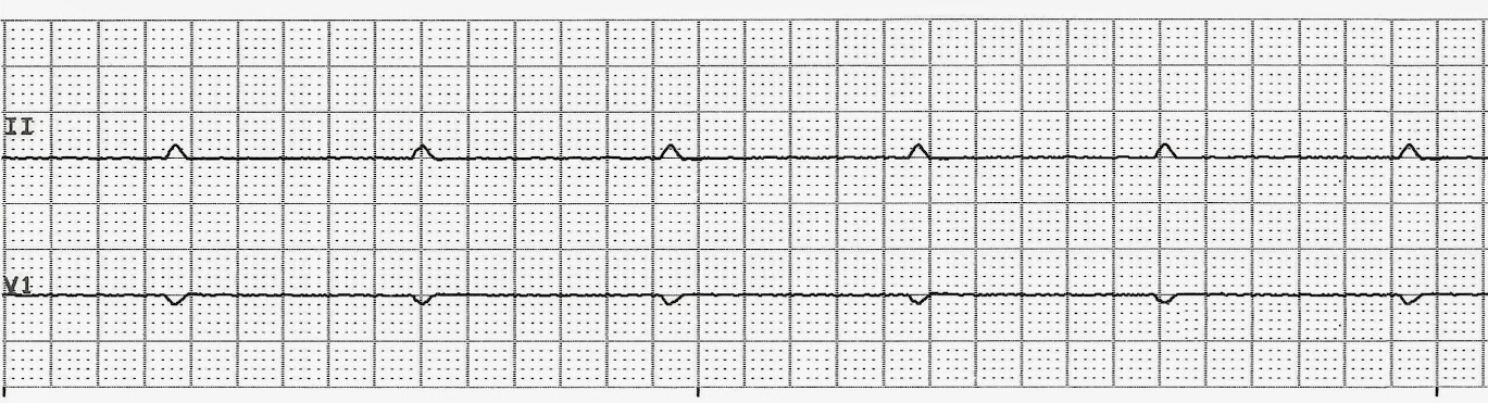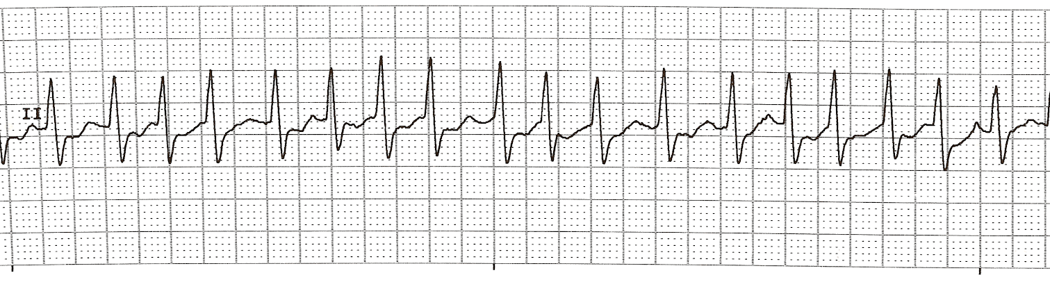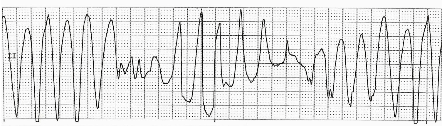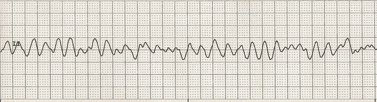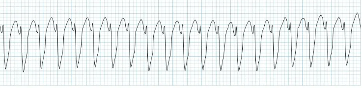 Patient has a history of a heart transplant and becomes unresponsive when she goes into this rhythm.