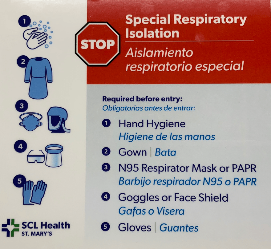 When you see this sign outside a patient room, the correct PPE to wear (don) is