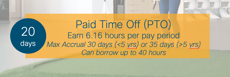 Earn 6.16 hours per pay period, accrue up to 30 days and the ability to borrow up to 40 hours.