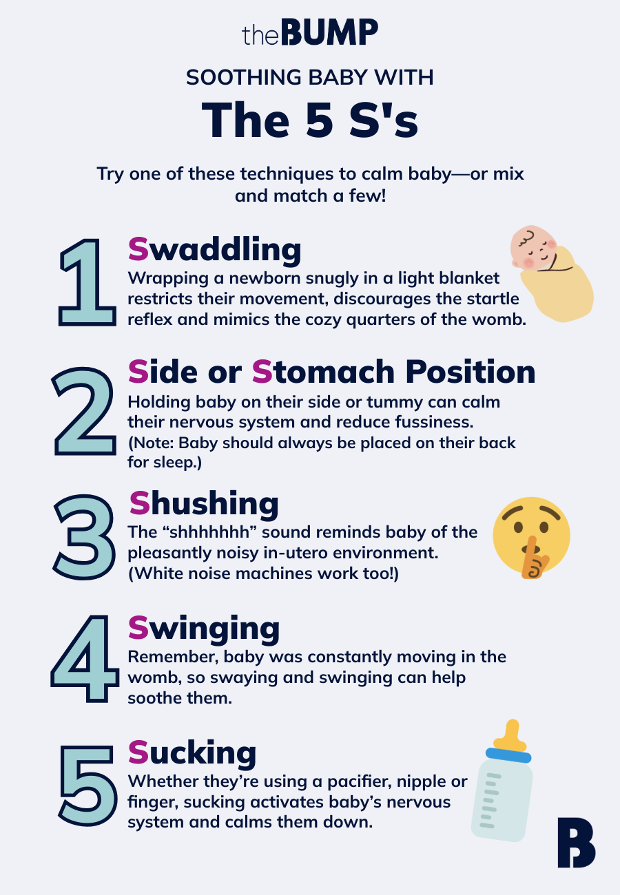 (Swaddle, Side/Stomach Position, Shush, Swing, and Suck)