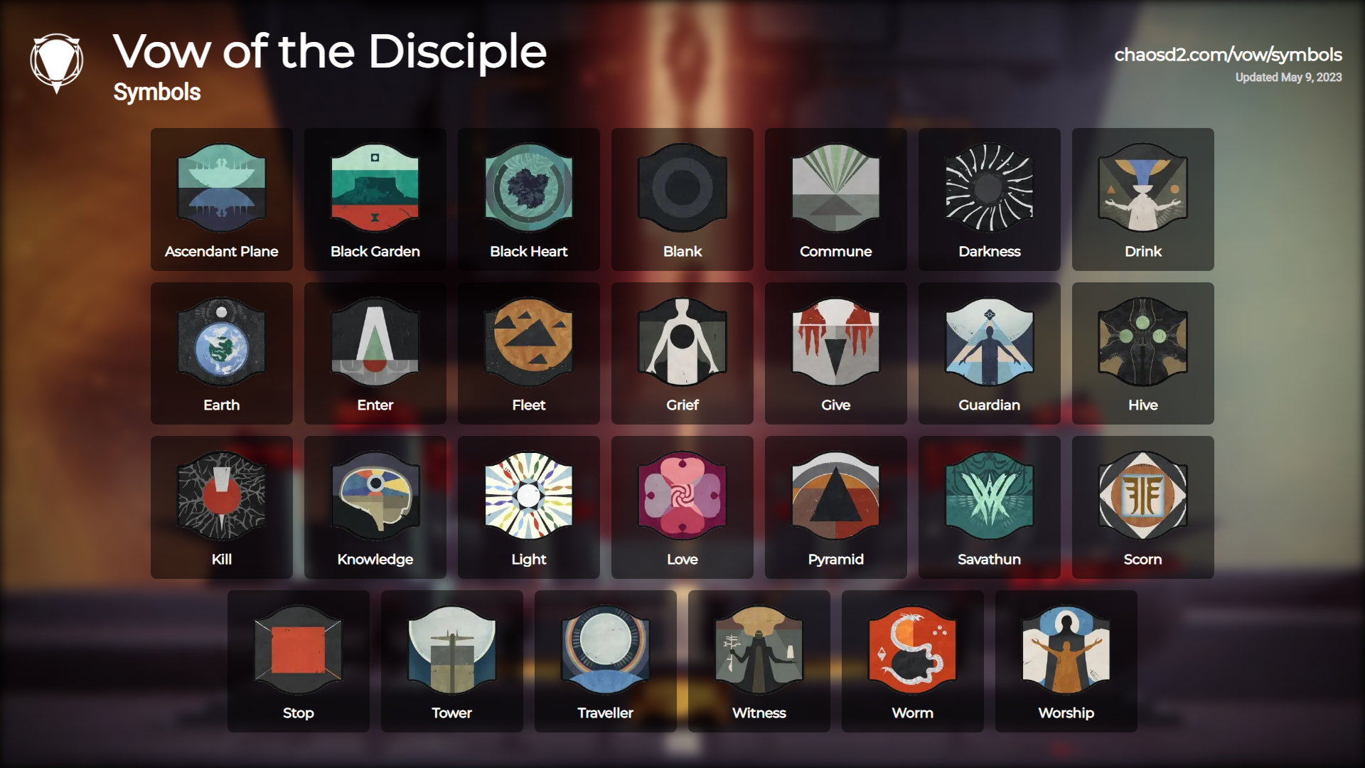 Name 10 of the 27 Sundered doctrine symbols