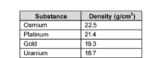 A sample of a substance has a mass of 121.98 grams and a volume of 5.7 cm3. What is the substance?