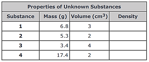 A rock has a volume of 3 ml and a mass of 96 grams.