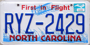 The North Carolina license plate proudly states 'First in Flight.' The Wright Brothers were from Ohio and traveled to Kitty Hawk, North Caroline  to test their airplane designs. On December 17, 1903, the Wright flew their plane for the first time.
