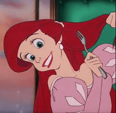 What does Ariel use to brush her hair at the dinner table in front of Prince Eric?