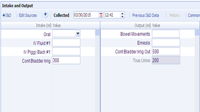 How often is Continuous Bladder irrigation monitoring and documentation of Intake and Output is required?