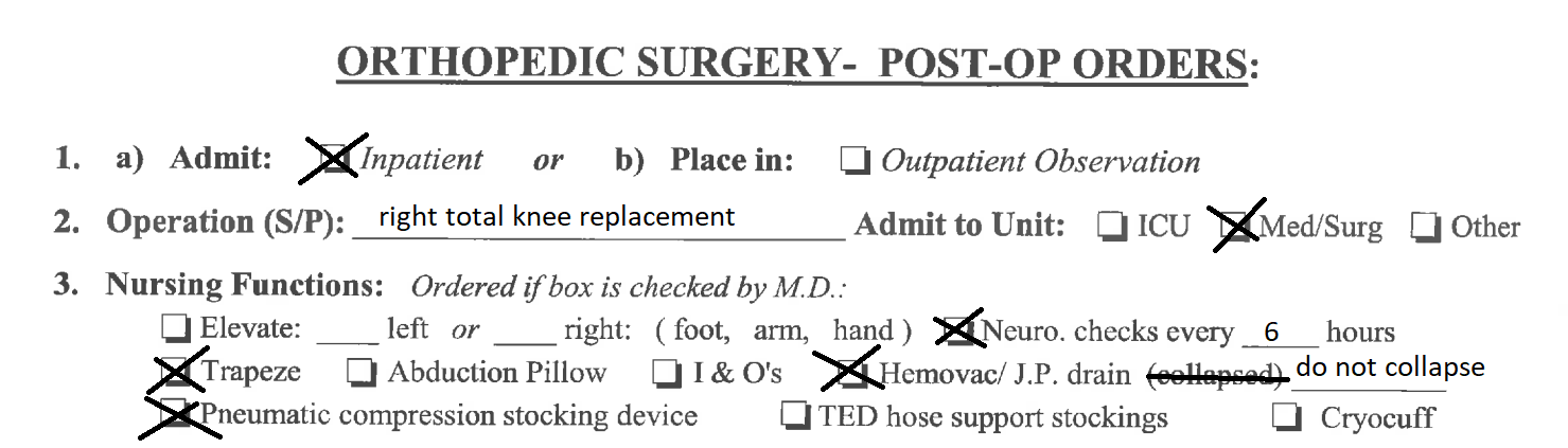 in reviewing the paper post-op orders, you find the below orders. State 3 nursing interventions/ assessments required.