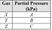 Gases X, Y, and Z, in a closed system at constant temperature, have a total pressure of 80 kPa. The partial pressure of each gas is shown below.