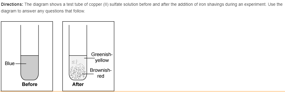 After the addition of the iron, the test tube now contains iron (II) sulfate solution and copper particles. The iron has become part of a — compound or mixture?