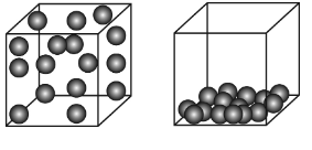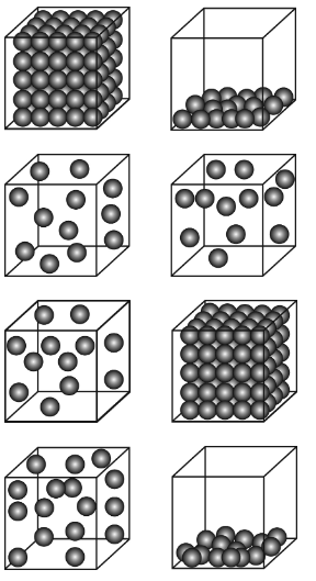 Which diagram below BEST illustrates how atoms are distributed in containers in gaseous and liquid states?