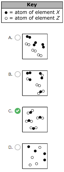 Which particle model diagram represents only one compound composed of elements X and Z?