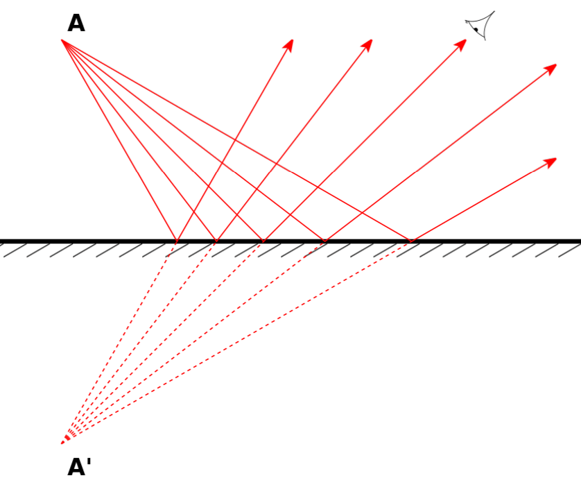 Pourquoi est-ce que l'image formée dans un miroir plan est virtuelle de nature ?