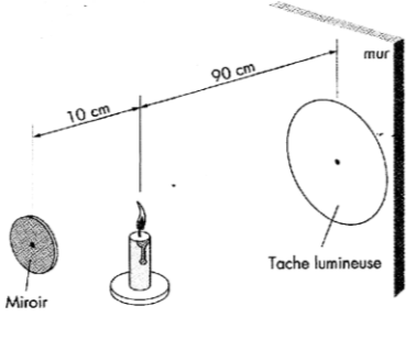 Le diamètre du petit miroir est de 5cm. Quelle est le diamètre de la tache lumineuse ?