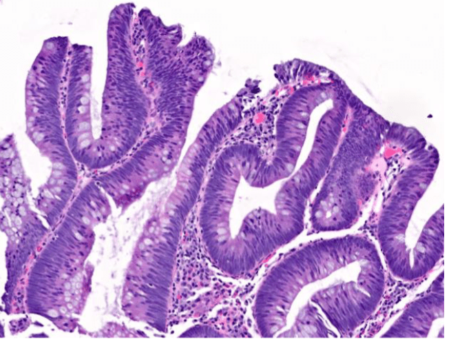 Which image shows malignant colonic mucosa