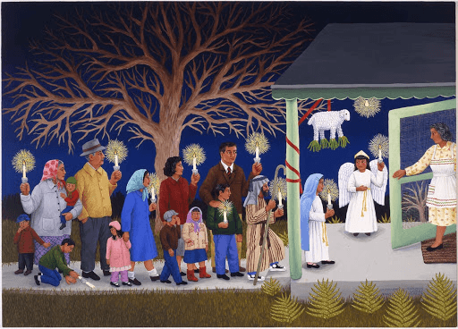 Each night the travelers go to a different house. They knock on the door. When the door opens, they sing. The family inside refuses to let them in.