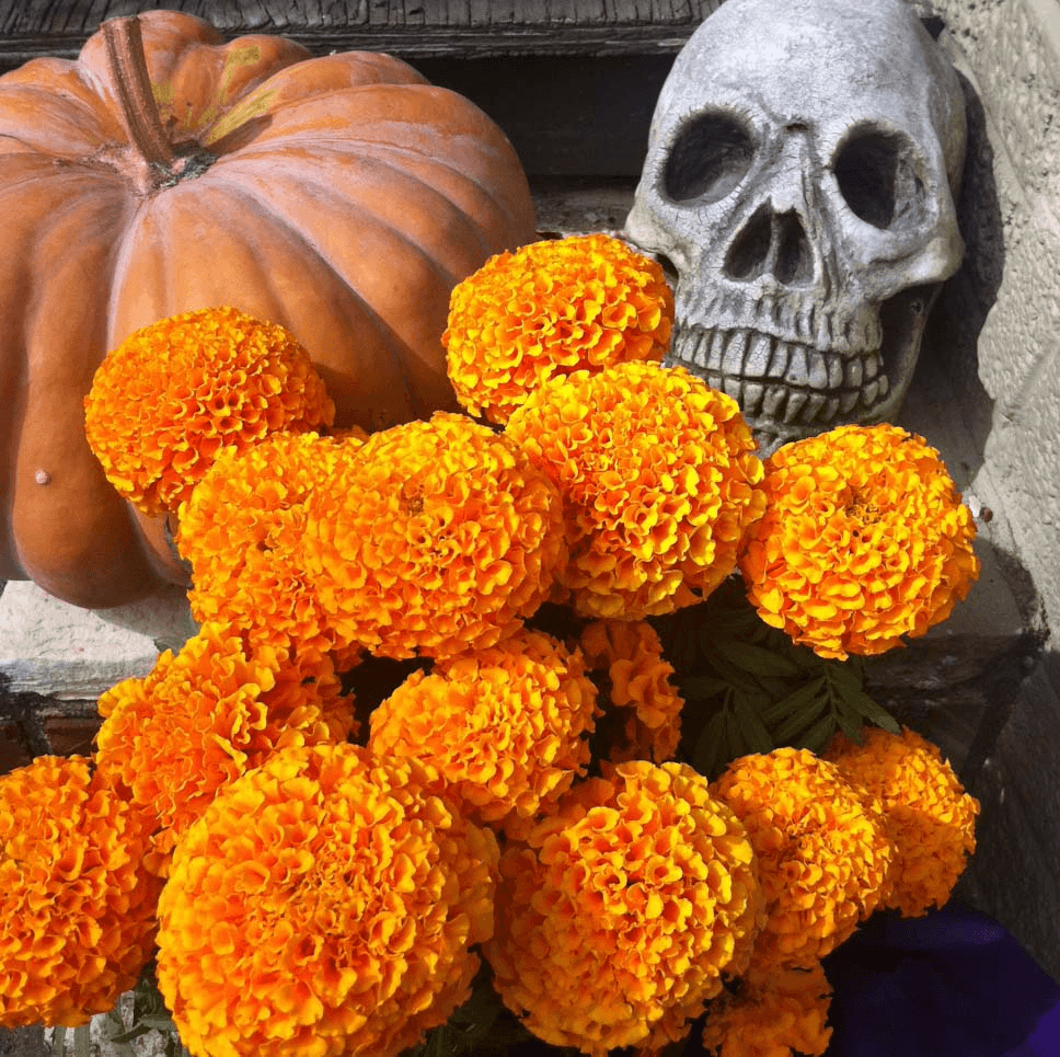 We set up our ofrenda with candles, food, drinks, beers, marigold flowers and the most important thing our ancestors' pictures we celebrate and honor their lives.