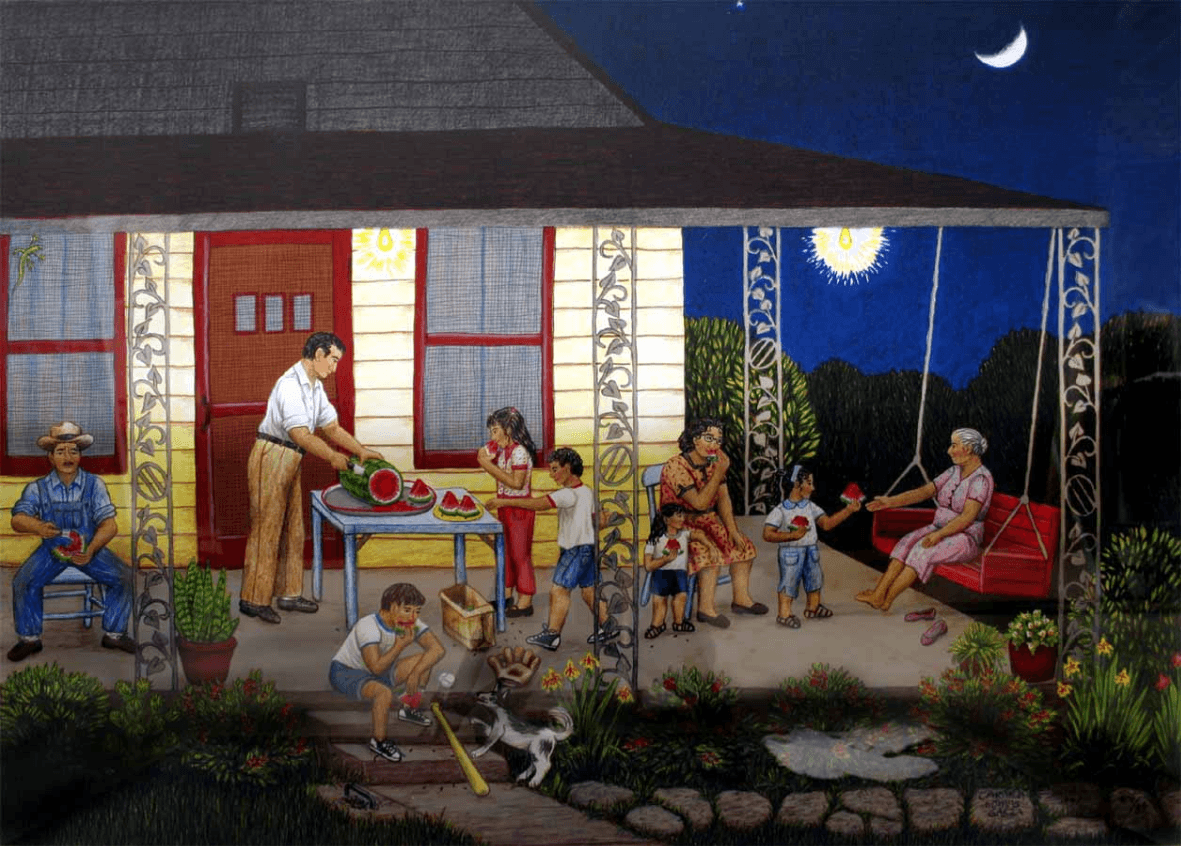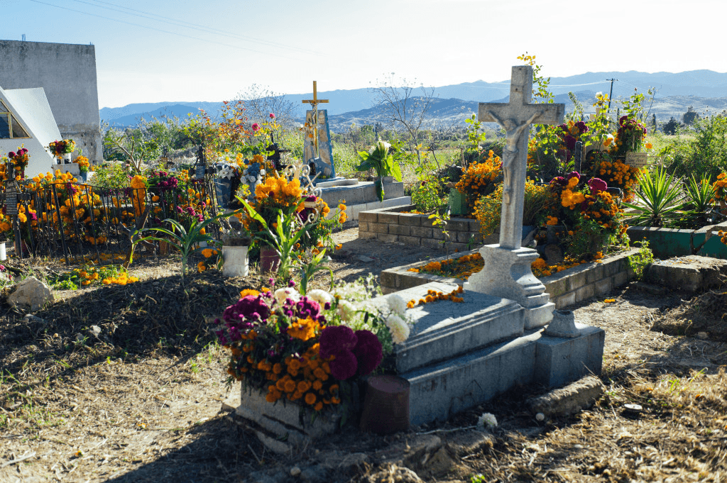 We set up our ofrenda with candles, food, drinks, beers, marigold flowers and the most important thing, our ancestors' pictures. We celebrate and honor their lives.