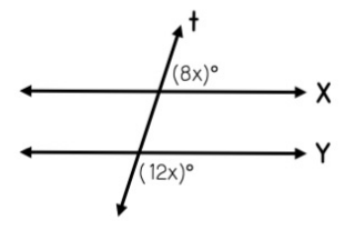 Two angles that are on opposite sides of the transversal but both inside the parallel lines; the angle measures are congruent.