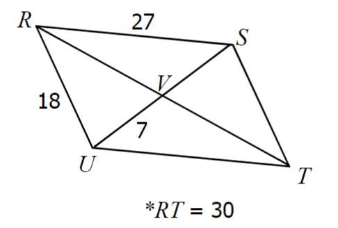 If RSTU is a parallelogram, find the measures of UT, ST, VS, and VT.