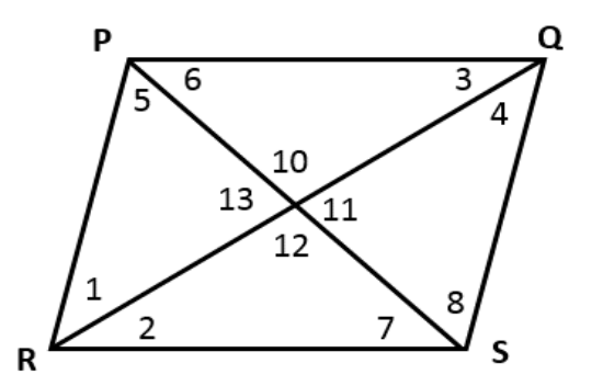 If PQ is parallel to RS, which angles do we know are congruent to each other (write down two pairs of angles)