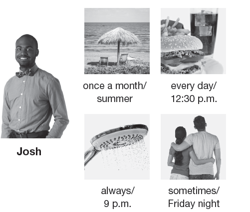 Josh /  he always takes a shower at 9:00 pm (every day).